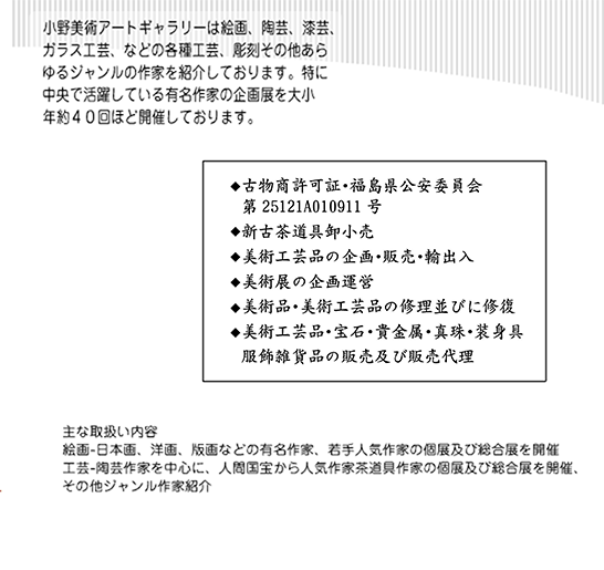 アートフルコミュニケーション-絵画、陶芸、漆芸、ガラス工芸、彫刻など、日本と世界の美術品は小野美術へ